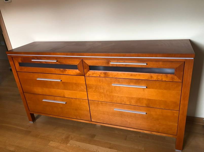 komoda , cztery szuflady głębokie, dwie płytkie szuflady przeszklone, wymiary komody: szer. 170, wys. 90, głęb. 43 cm.