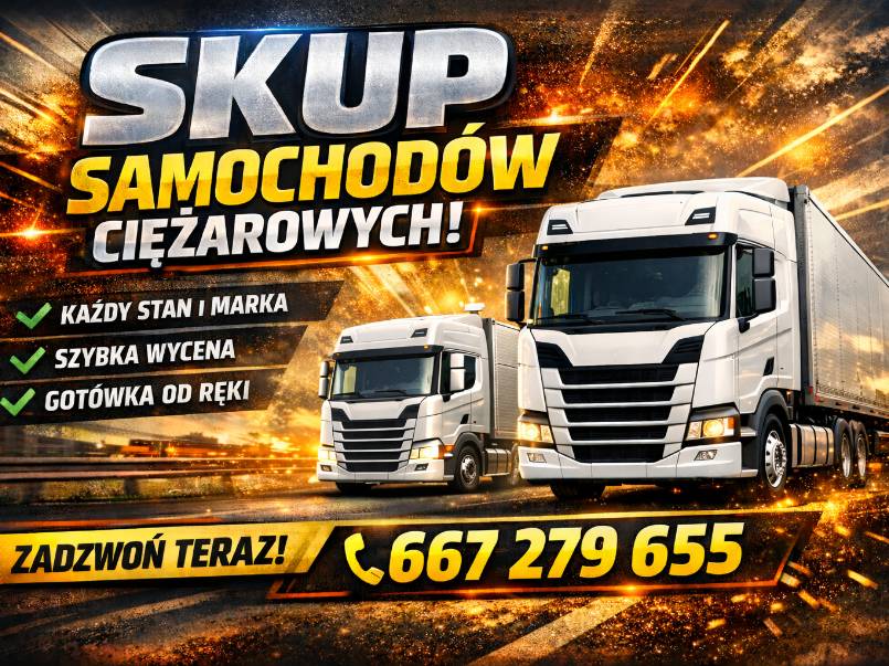 Poszukuję do zakupu **samochodów ciężarowych, ciągników siodłowych oraz naczep** w każdym stanie technicznym: