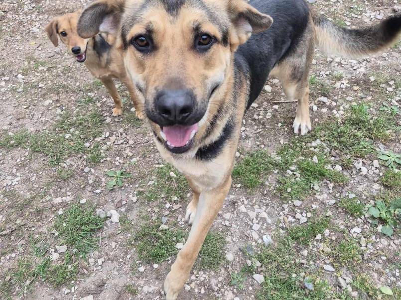 Moje duże łapy potrafią delikatnie prosić o uwagę, a wielki ogon merda tak mocno, że aż cała buda się trzęsie, gdy tylko widzę osobe, która weźmie mnie na spacer.