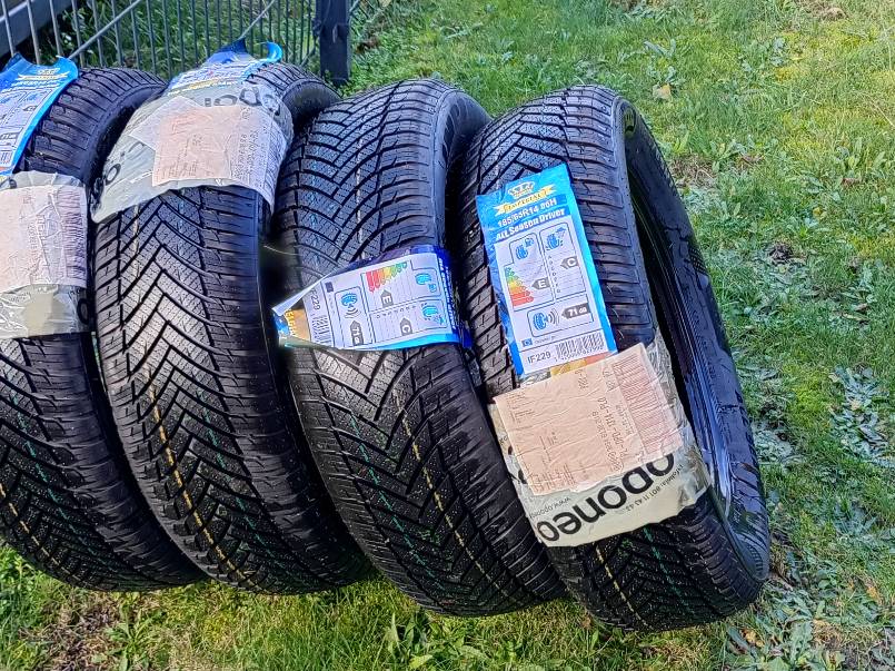 Na sprzedaż nowe opony, całosezonowe. Przechowywane w garażu w temperaturze pokojowej, lekko przybrudzone, ale technicznie STAN IDEALNY.