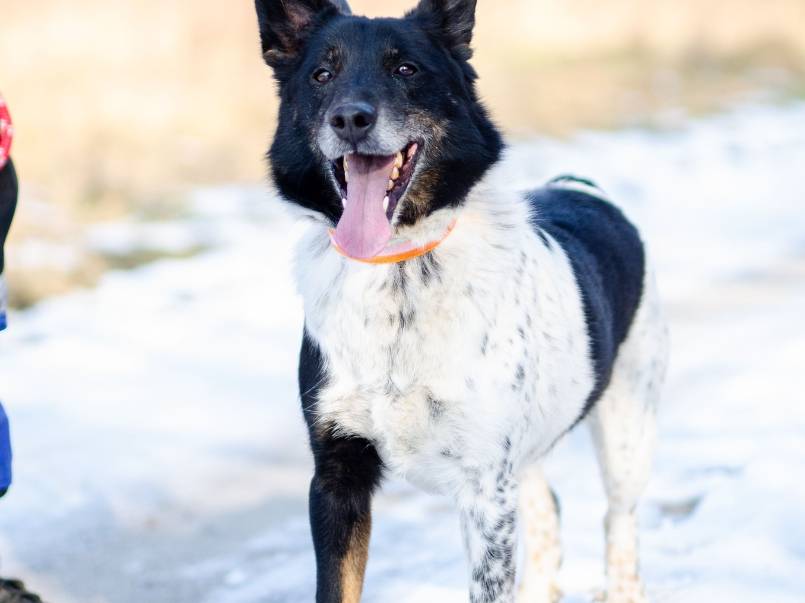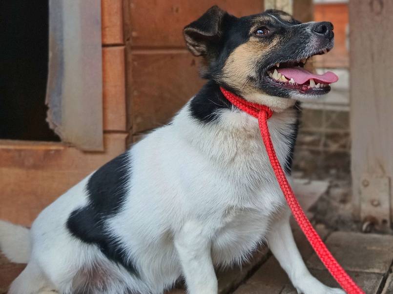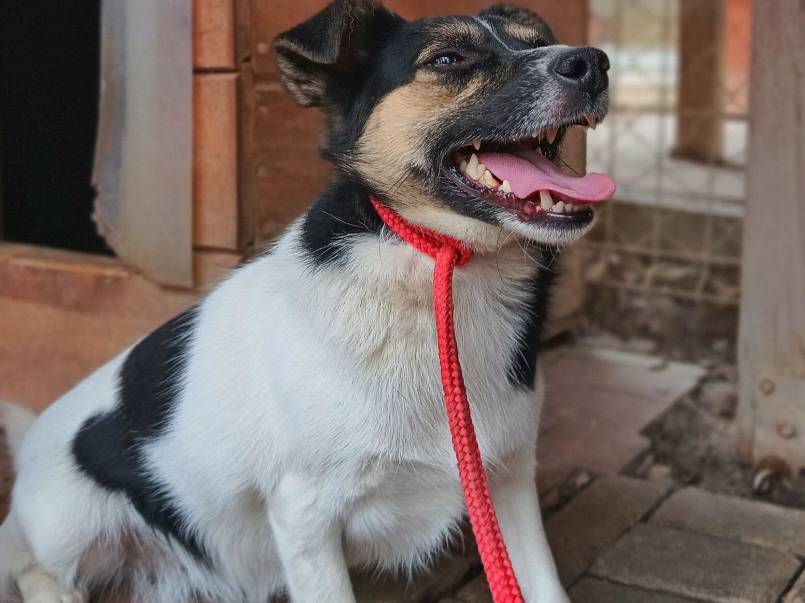 Łatek to około 6-letni pies, z którym można by "konie kraść". Pełen radości, energii i miłości do ludzi. Gdy widzi człowieka, wygina się w różne strony, błaga o głaskanie i cieszy się całym sobą. To pewny siebie, odważny chłopak – jeśli coś mu się nie podoba, potrafi postawić na swoim i obszczekać innego psa. Jego największa miłość? Człowiek… i PATYK! Nasza schroniskowa „krówka” dosłownie szaleje na widok podniesionego kija – staje na dwóch łapach, merda malutkim ogonkiem i czeka na zabawę. To sprawia mu ogromną radość! Łatek pięknie chodzi na smyczy, zna podstawowe komendy i prawdopodobnie miał już kiedyś swój dom. Jest psem średniej wielkości, idealnym kompanem do wspólnych spacerów i przygód. Może właśnie Ty jesteś osobą, na którą tak długo czeka?