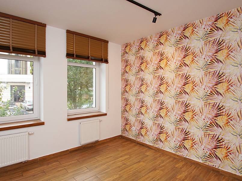 Nieruchomość posiada dwa wygodne pomieszczenia, dużą łazienkę z natryskiem oraz przedpokój. W większym częściowo otwartym na hol pokoju zamontowana została klimatyzacja, w tym pokoju znajduje się wyjście na balkon, tu na jednej ze ścian króluje szara cegła, w oknach zamontowane są modne żaluzje. Mniejszy pokój posiad drzwi, dwa okna dające światło dzienne a na ścianie znajduje się ekstrawagancka tapeta. W całym lokalu na podłogach znajduje się jednolita glazura przypominająca drewnianą deskę co znacznie ociepla lokal.